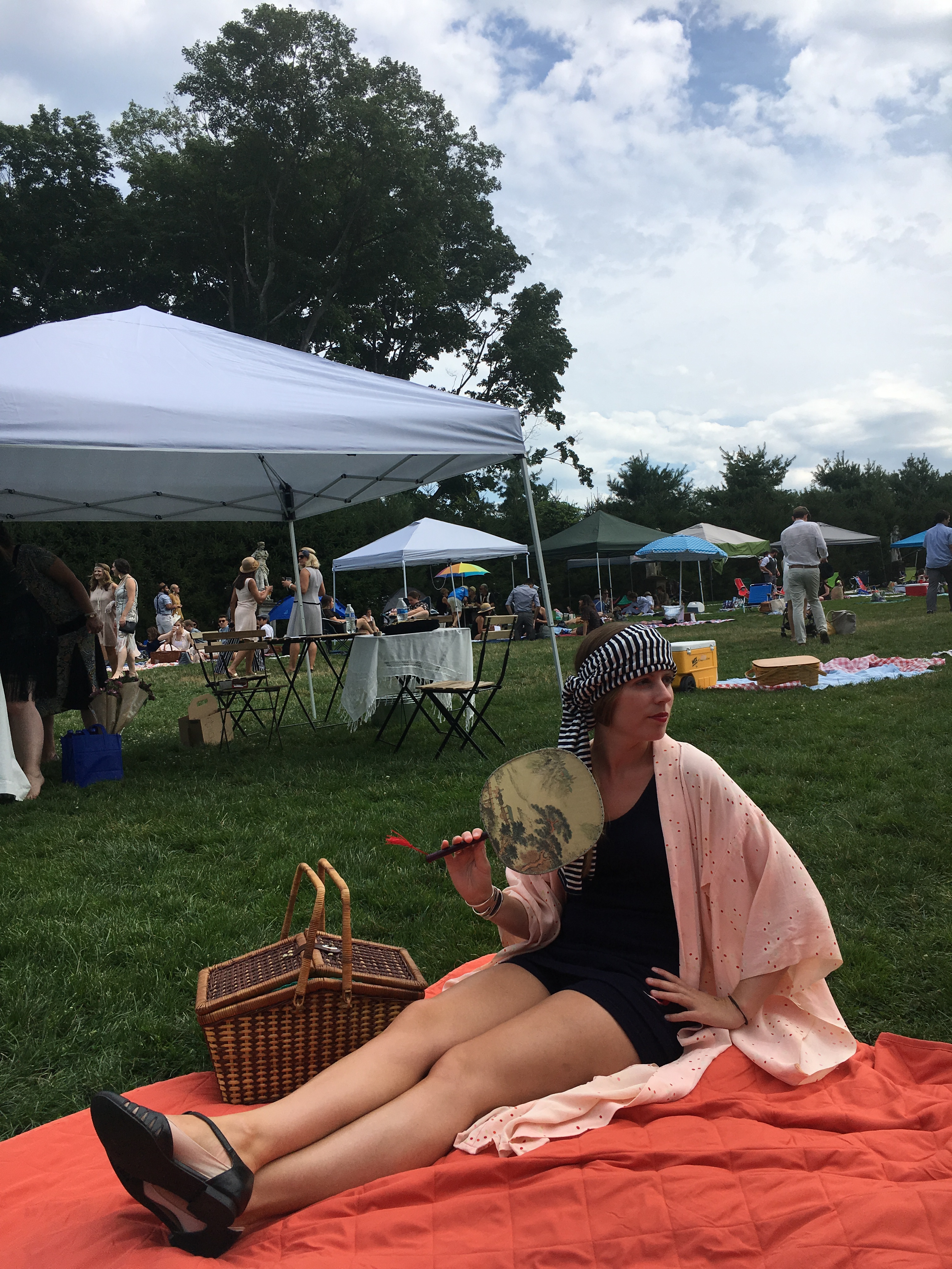 Our day was broken up between lounging and eating cheese and charcuterie, taking dance lessons courtesy of Boston Swing Central, dancing to some of the best live bands, and perusing the fine vintage fare at all the fantastic vintage vendors. I particularly liked seeing all the beautiful pieces from Hall’s on Broadway, Bohemian Boutique, and The House of Findings. I found a fabulous 80’s does 30’s jumpsuit and true vintage Edwardian nightgown set!